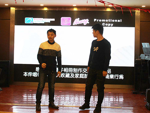 圖為員工何成龍和徐靜雯精彩的現(xiàn)場主持